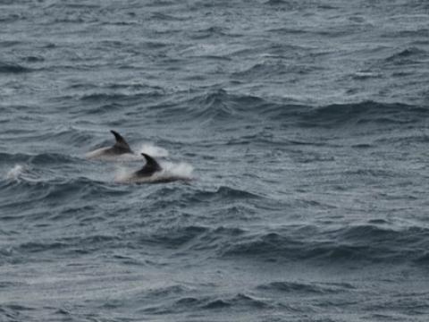 Report from Hafsúlan: The wind had calmed down a little today but it definitely felt a lot colder. Everyone made use of the overalls we provide free of charge to keep warm and dry from the occasional splash we got. We once again sailed from the old harbour of Reykjavik North West towards Akranes and once the swell got too big we sailed towards the Reykjanes Peninsula. It was near the end of the tour, after just over 2 hours of sailing when we spotted a pod of 15-20 White-beaked Dolphins close to the coast in the direction of Keilir (cone shaped mountain). They were surfacing fast and leaping, very difficult to photograph and keep your hands warm at the same time. We watched them for about 10 minutes before they submerged and disappeared. We then watched the sun go down and ended the tour in Hafnafjörður.
