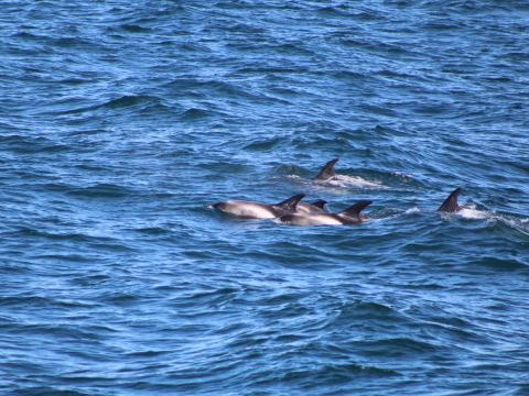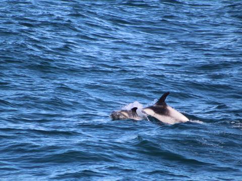 Report  from Elding: The sail out was nice and sunny but the wind had grown stronger and the swell was higher. After sailing out into the bay a few fins were spotted in the distance, once we were closer we were able to identify these animals as 3-4 white-beaked dolphins. They surfaced numerous times all the way around the boat coming up only 5 meters away at times. You could even see them swimming under the water. They surfaced many times and all the way round the boat and even swam under the boat. As the dolphins were being a bit sporadic we decided to leave these animals and try to find something else. Unfortunately, the swell was growing and we were unable to find anything else so we sailed for harbour in the lovely warming sun.