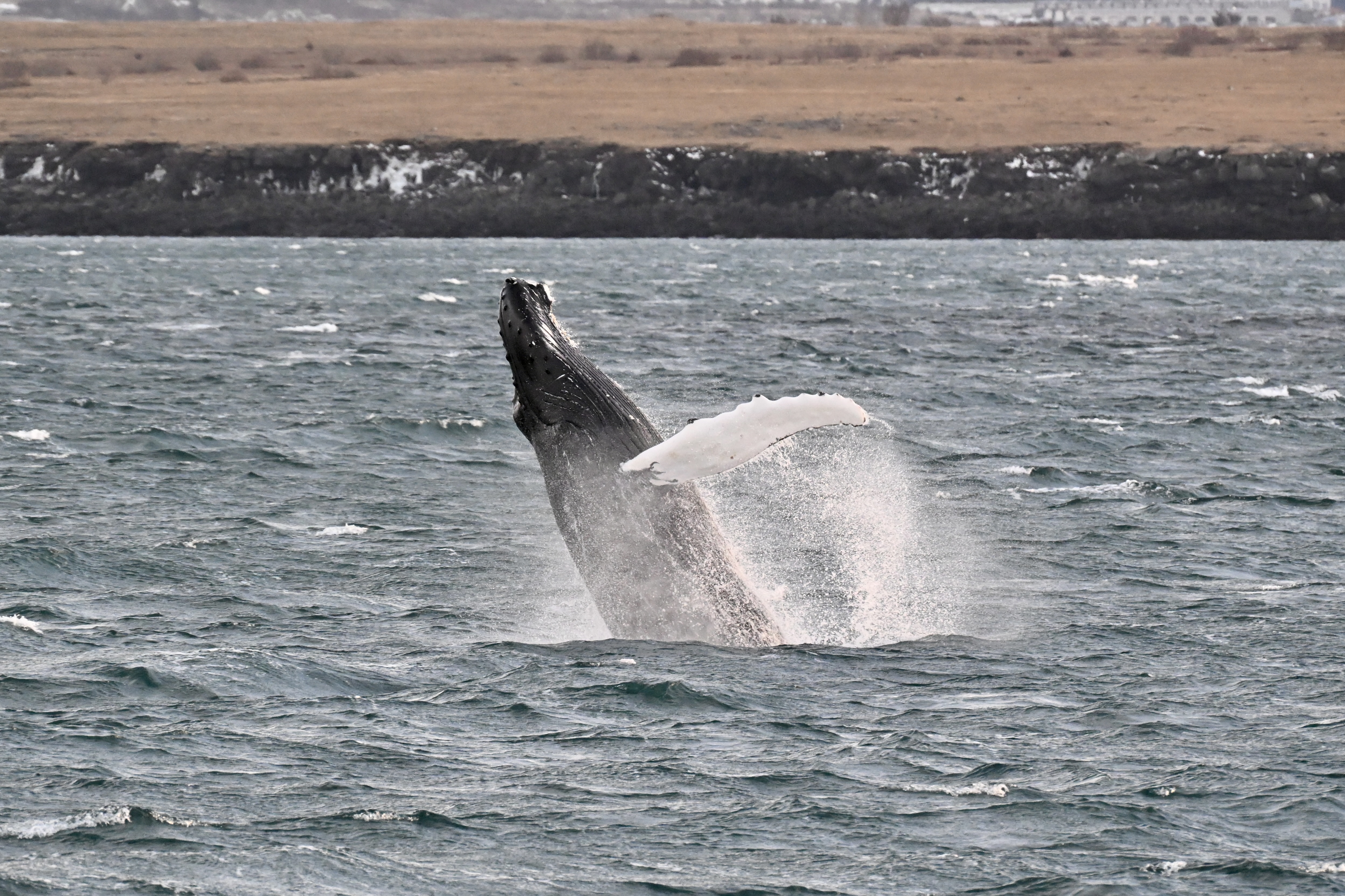 Report from Eldey: We sailed out with an icelandic breeze, but calm seas. We didn't have to go far, when we saw splashes from afar. So we headed there right away. It was a humpback whale breaching, but it stopped before we arrived there. But we could have a very nice view on it and not only that, there were 2 humpback whales. They were swimming beside each other and then going down with a fluke dive. We watched them a few times, before we left them. As we sailed out into the bay, we couldn't find anything else, so we went back to the humpbacks to have a last look at them. Before we arrived one of them was starting with peduncle throws and then once we were there, he did tail slaps as well. Then they showed us their beautiful flukes again a few times. As always, all good things must come to an end, so we left them and headed back to the harbor with happy guests and happy crew. :)