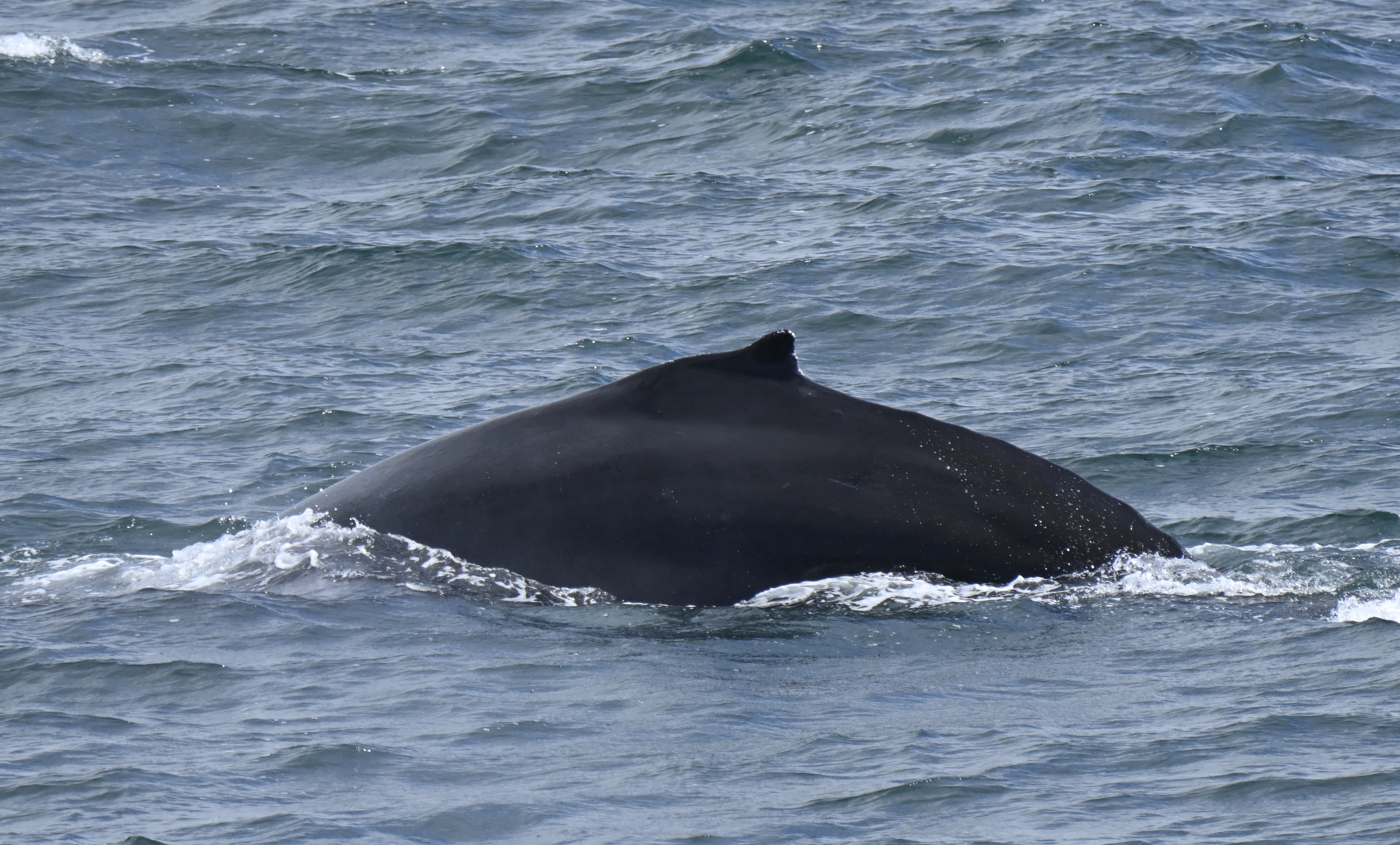 Report from Eldey: This morning seas were calm and the sun was shining but a northern breeze made our trip at sea quite chilly. After searching around for a while we were rewarded with a sleepy humpback whale. This individual stayed close to the surface very often so we could see it´s big pectoral fins shine clearly through the water. After a bit of time we decided to give it its well-deserved rest and moved onwards. We then encountered a second humpback whale, who went on short dives so we had some nice looks at its beautiful fluke coming out of the water. Satisfied with the morning we then sailed back to a sunny Reykjavik, with a hot coffee warming us up.
