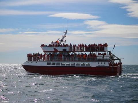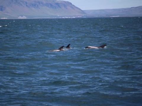 Report from Elding: The weather had gotten a lot better this afternoon. We started in Akurey where we saw some puffins and other birds. We headed out to the same area as that morning and we found another pod of about 15 White-beaked Dolphins. They came close to the boat and even swam under it. We could see them under the surface and they were all around us. We decided to head a bit further out and search for something more. We searched a very big area but unfortunetly we didn't see anything more but the sun was shining and the sea had calmed down so it was a beautiful tour.