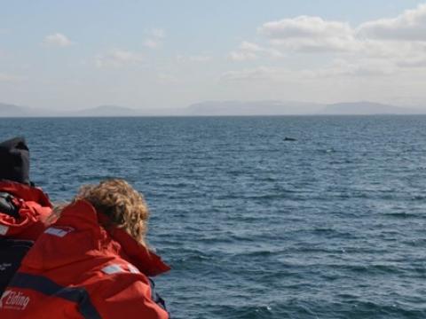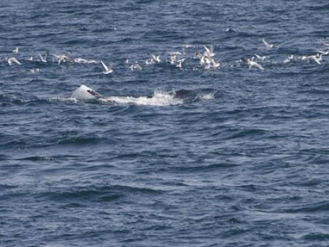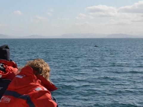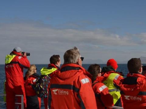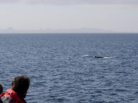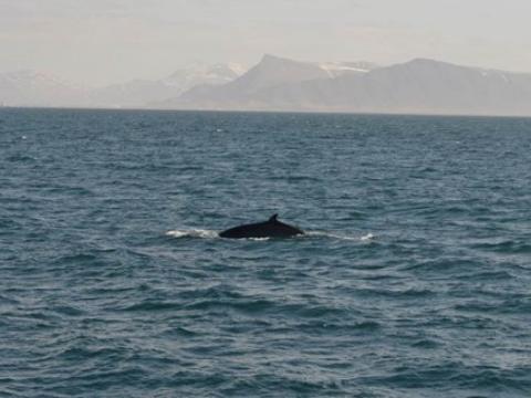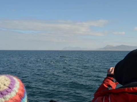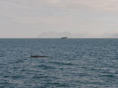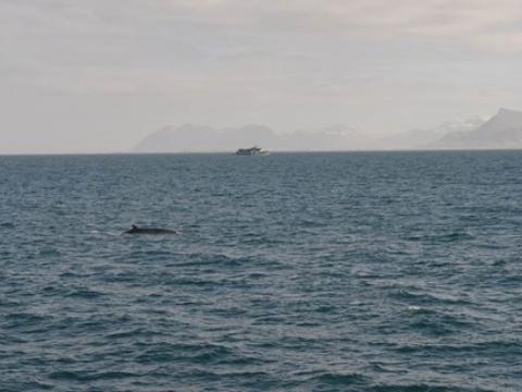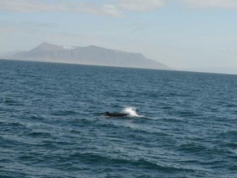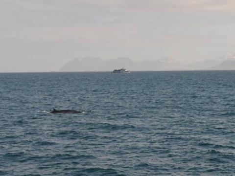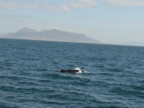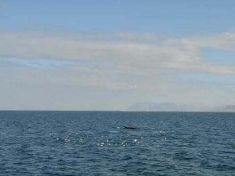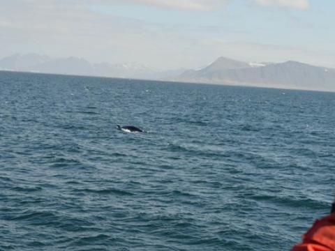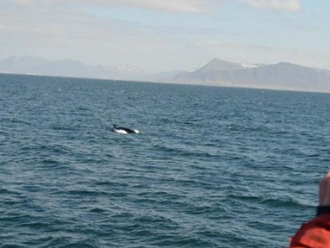 Report from Hafsúlan: In the afternoon the sea condition was even milder than in the morning. We sailed out far to the Southwest, hoping to see Happy, the Minke Whale from this morning, again at the previous site. While we were searching out the resting and feeding bird flocks as an indicator for rich feeding grounds, we encountered Harbour Porpoises, 10-20 intermintally here and there. The first Minke Whale we spotted, however, didn't seem to be in a whale watching mood. Already on our way back we got word of a small pod of White-beaked Dolphins. The dolphins seemed intrigued by the vessel and dove even as near as 5m to our boat. When we followed the small group of 3 individuals, we also got to see another Minke Whale in the distance, before we had to head back to the harbour.