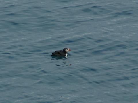Bird species identified today: atlantic puffins, razorbill, northern fulmar, blue fulmar, common guillemot, northern gannet, manx shearwater, lesser black-backed sea gulls, european storm petrel, great skua, black-legged kittiwakes, eider ducks.