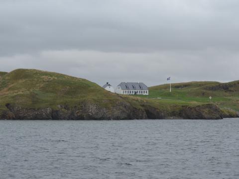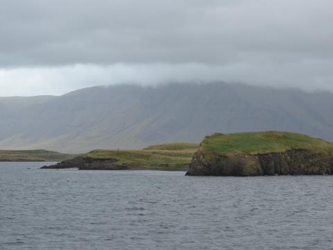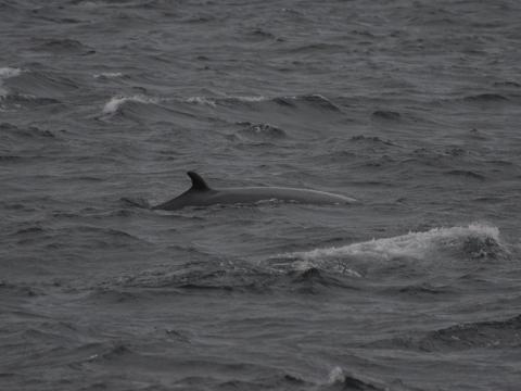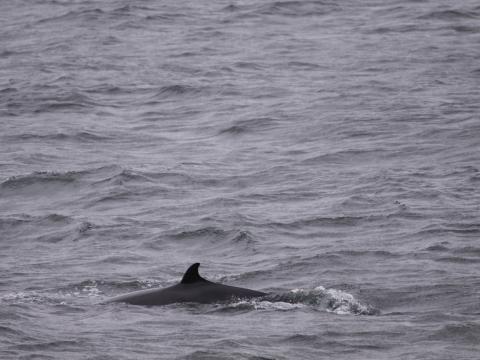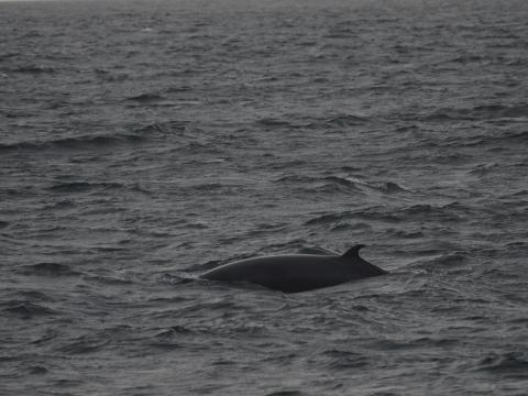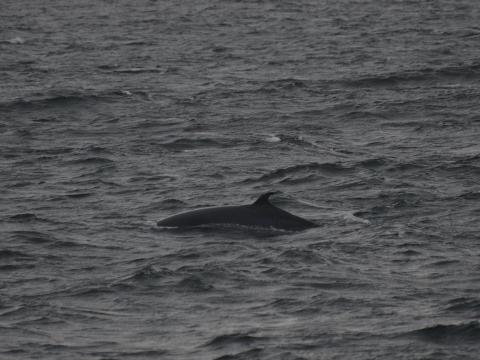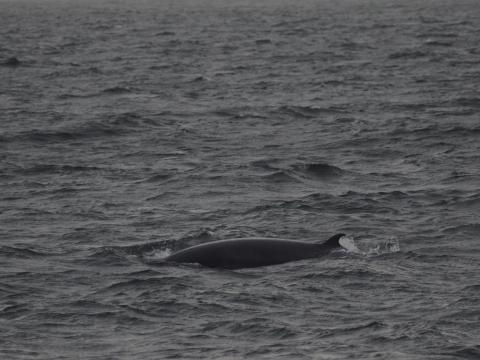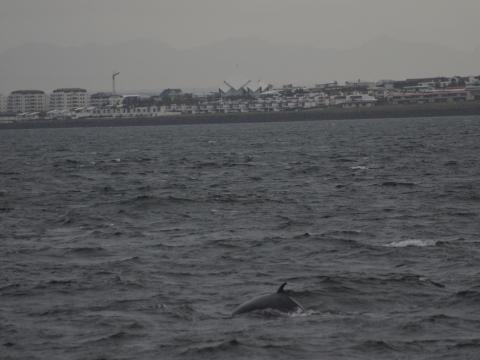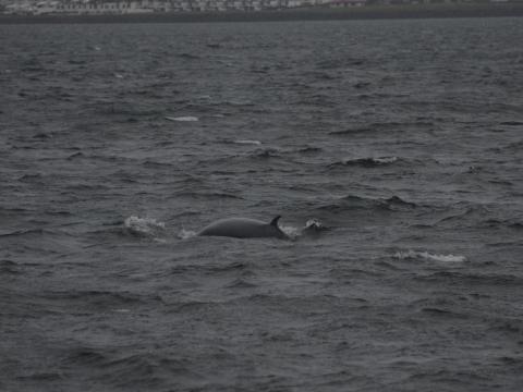 Report from Hafsúlan: Because we spent most of this tour fairly close to shore there were less waves and it did not take us very long to find the first minke whale. That was how our non-stop sighting period started. For about one and a half hours we were constantly watching some minke whale, at least 3 different ones in total. The first individual we saw was on its own, but then we found a pair of them. It took us a while to realize that there were two individuals moving around together. At first we were surprised at how often "this individual" surfaced, but the mystery cleared itself up as the two then surfaced at the same time. From the way they synchronised their behaviour it almost looked like they were surface-feeding in a coordinated manner. On the way back the captain even decided to give our passengers some nice looks at the islands in front of the city before we returned to the harbour.