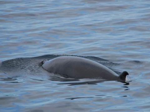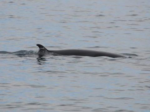 Report from Elding: The wind was a little higher than this morning but all day we´ve had a warm wind from the east so we were always very comfortable. The sea was still flat too, so our visibility was excellent all day. We were very confident sailing out as we had been so successful in the morning, we just had to find that same great area! This afternoon would turn to be very similar to the morning, though along with Minke Whales we also saw another species in the Harbour Porpoises. We found three porpoises that were all very elusive, they would appear near a minke whale but soon disappear. At first the minkes were staying quite far away and our sightings were sparse. But after following some whales we found what we needed, a feeding area. There were three whales in this area that were coming very close and giving us a much better show. And once again we found a minke that we know very well, this one is named "Midi". Always good to see an old friend on a good tour!