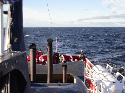Report from Eldey: A beautiful but cold morning in the bay, sheltered by the NE winds by the mountains Esja so the sea was very calm but became alot rougher as we headed further offshore. Our first sighting was of a minke whale that we were told about from another whale watching vessel. It was easy to spot the minke whales today with the cold air and the very sunny conditions, this made the blows very easy to spot. It was later in the tour where we had the best sightings, two minke whales and a small pod of 3-5 harbour porpoises. One of the minke whales was soooooo cute, very small and surfaced just 5-10 meters from the boat on many occasions. It was so exciting this morning with the minkes popping up here and there. Passengers having just as much fun as the crew in spotting the fast minkes.