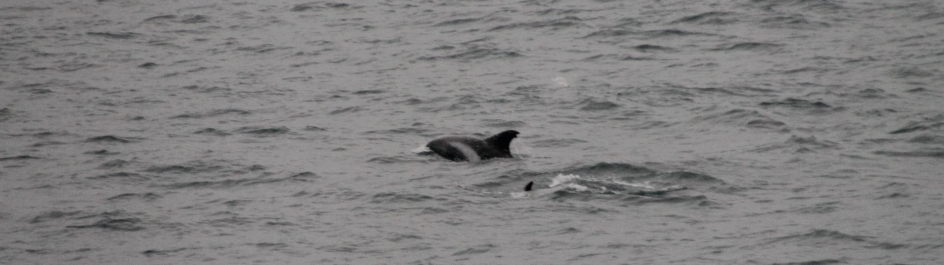 Report from Eldey: Today we got to experience some true Icelandic weather, it was overcast with a slight drizzle but nothing a raincoat or one of our fancy overalls couldn't fix. After only 20 minutes of sailing large fins and small backs were spotted popping out of the waters surface, these could easily be identified as the white-beaked dolphins even from quite some distance. Once closer were were able to watch this rather large pod of 12 individuals traveling and occasionally leaping out of the water showing us their lovely flukes or tails. These animals stuck around for quite some time and we were even able to identify one of these dolphins as Sophie, an individual we have seen for quite some years. After watching these amazing animals for quite we decided to move out into the bay to search for something else. We spent a long time searching but unfortunately we were unsuccessful as the wind was picking up and the rain began to fall a little heavier. Nevertheless, it was a pleasant sail back and many of the passengers rode it out on the top deck enjoying the long rolling waves.
