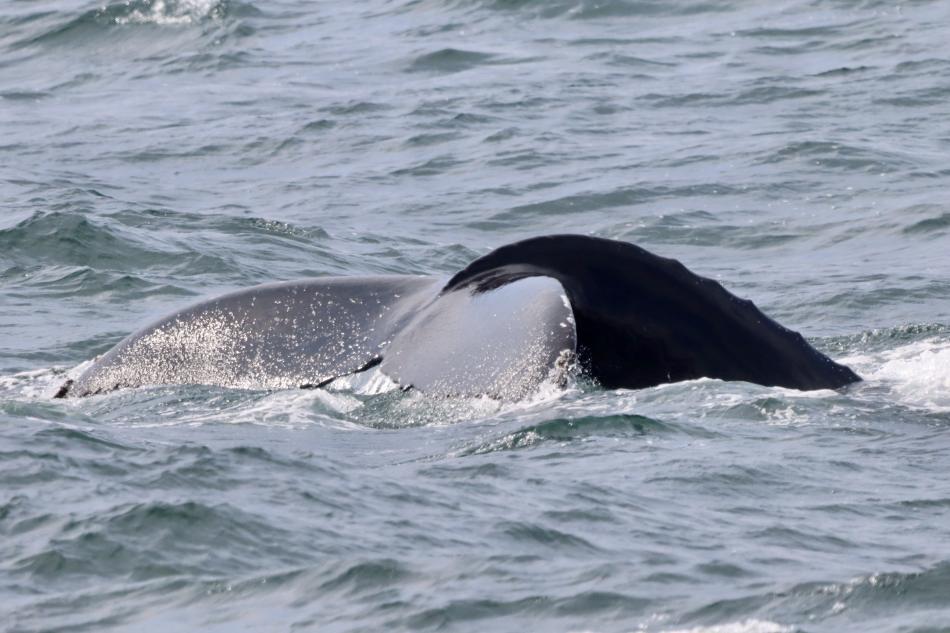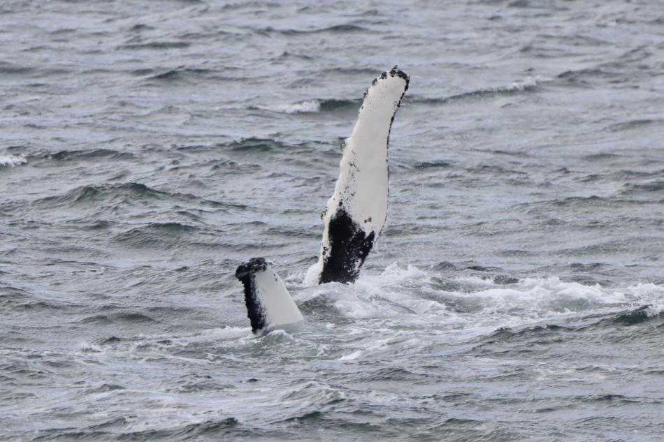 Report from Eldey: In the afternoon, the wind had grown a little stronger but we were still determined to give our passengers some good sightings! We headed back to where we had had such great success this morning, and soon found a pod of around 5 white-beaked dolphins. They were a little elusive and didn't want to stay around the boat for very long so we continued our journey. After a little while, another boat let us know on the radio that they had seen a humpback whale! We sailed over to see it for ourselves. Once we got there we recognised it as the same individual that we had seen this morning. We were able to spend some time with this whale that had calmed down since our morning tour. We got to watch a few brilliant fluke dives through the waves. While we were waiting, we even saw another pod of 6 white-beaked dolphins calmly swimming down the side of our boat. After a while, the other whale watching boats left and we had the humpback all to ourselves and were able to see a wonderful fluke dive right in front of the boat just before we had to leave to head back to the harbour.