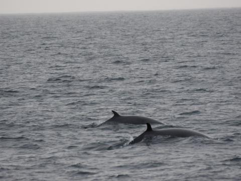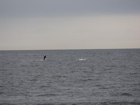 Report from Eldey: What a tour!It even left myself in awe. It was a beautiful and misterious bay today. We could see most of the landscape around and the different weather conditions in different places in land and at sea. We had a small amount of passengers on this one. 44 to be precise. It also made our trip a bit cozier and relaxed. Almost everyone grabbed an overall and even some of our passengers made use of our warm blankets! whale punches and hot coffee did the rest. It did not take very long until we found splashes not far from Hvalfjordur. A pod of about 10 individuals of white-beaked dolphins was breaching like crazy. People went mental too! so amazing behaviour to witness on a changy day like today. Bear in mind we had to cancel our tour early in the morning due to the rough weather and sea conditions. Besides, the background was perfect for the pictures. Akranes and Akrafjall (the mountain next to Akranes) were especially beautiful today. We also saw another pod with about other 10 breaching as well. Everyone got a really good look at them indeed! After about 20 minutes sailing alongside the dolphins and watching some other behaviours as bow-riding, leaping and upside-down breaching (Yes some of the calves and juveniles were very active and playful too) we decided to go a bit further into the unknown in order to find more cetacean species. It did not take long either. We found 3 inviduals of minke whale! even 2 of them were travelling together. After several dives of the two we had to go back home but not without a smile upon our faces. Lovely animals, better audience!!hats off!!
