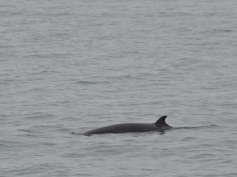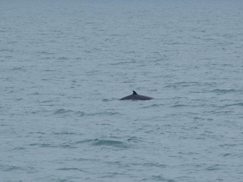 Report from Hafsúlan: On this still overcast afternoon we left the harbour looking for cetaceans, and in particular the humpback whale we spotted on the morning tour. As on the earlier tour, we didn't get far until we saw our first minke whale which came up not far from the boat. During our stay with this animal we realized that we were surrounded by minke whales after a short period following that one individual to where it seemed to be feeding. We turned our engines off and enjoyed having the animals around for a while, while the sea conditions improved noticeable. While scouting the sea for other species, we managed to spot 3 harbour porpoises and again splashes in the distance, at least 5 kilometers away. The blow seemed to differ from a minke whale, which was the right observation, since it turned out to be the blow of the HUMPBACK WHALE that we saw on the morning tour. Trying to move closer to it we realized how close we were to the harbour. We watched the whale for a while, traveling and logging very close to the island Akurey until we had to to finish our trip and head back home. Estimating 4-5 minke whales in total.