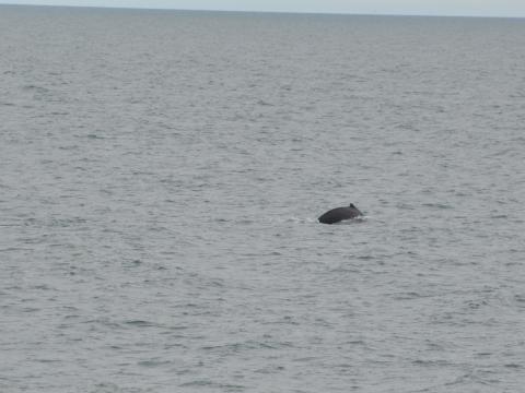 Report from Elding: We headed out from Reykjavík harbour and almost immediately spotted the humpback whale again far away in the distance. We sailed towards where we thought we'd spotted it but it turned out to be a very elusive humpback so we didn't spot it for another 20 minutes when it only showed itself for a tiny moment and then disappeared. We decided to leave it alone and headed further out into the whale spotting area where we located a pod of 7 white beaked dolphins. We sailed with them for a bit until Hafsúlan located our humpback again and this time it was in a much more of a whale watching mood. So off we went and followed it at a leisurely pace until we ran out of time and had to turn back to harbour. Smiles all around on this fantastic summer trip!