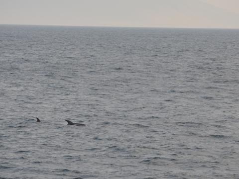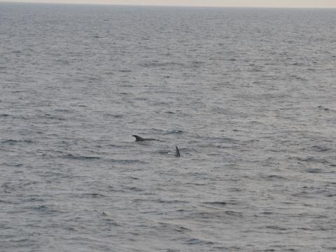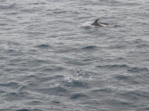 It was getting windier by the day but the clouds were going away so the sun was able to shine down and warm us up. We went to see if we could find the dolphins again from the morning tour, when we arrived to the area we could find them but instead we saw 3 harbour porpoises swimming by. It is often hard to follow the porpoises because it is hard to spot them because of their small size. It took us a long time to find something else but then we got a call from another boat that they had seen som dolphins but when we came to the area the dolphins were elusive and hard to find. We sailed around for some time and finally we spotted three White-beaked dolphins, they swam around in the area for a while. It was a nice surprise when we spotted two other dolphins a little further and we also went towards them to enjoy their company. This was a nice ending after a long time of searching.