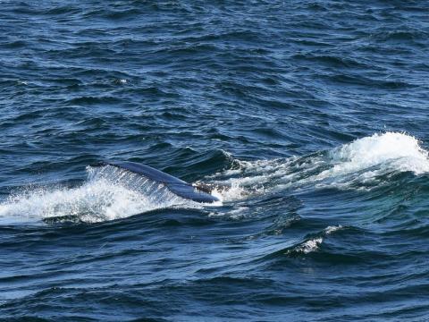Report from Elding: For this tour we decided to take our passengers to Keflavik by bus and start from the harbour there. The wind had picked up a lot during the day so it was very rough and high swells, even in the sheltered area of the harbour. But all of our passengers were of enthusiastic spirit and liked the comparison of "pretending to surf". Although there were whitecaps and waves everywhere, I was able to spot the blow of a humpback whale. Getting to it was a bit challenging with the waves, but we managed and in the end had an amazing hour with this whale. It came within a few meters of the boat and we could all see it under the surface as it stayed in one spot for a few minutes each time it surfaced. We could hear it as it exhaled. The funniest was - and this was a first for me as well - the humpback defecated in front of the boat. Certainly not something we see often. It was really enjoyable and as the weather was getting worse and we had had such an amazing time we decided to go back to harbour after 1 1/2 hours of whale watching as this was an awesome tour.