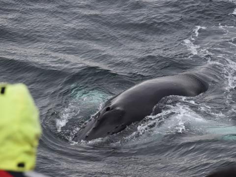 Report from Eldey: It didn't´t feel like first day of summer when we sailed out in the wind and rain, but the overalls kept us warm. It took more than an hour to reach the main area where we have been watching the humpback whales lately. The feast was clearly still going on today. Huge flocks of sea birds and 4 humpback whales were busy feeding when we arrived. We slowed down the boat when we got closer and started watching the animals around us lunge feeding. One of the humpback whales came extra close to the boat, it lunged out of the water multiple times within 10 meters of the boat, I swear that sometimes it was so close that I thought it might have touched the boat! It was such a unique and exciting encounter that we felt truly difficult to leave the animal at the end of the tour. Who doesn't want to celebrate first day of summer in the company of cheerful humpback whales?!