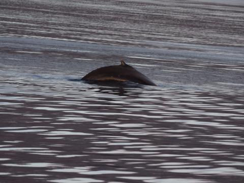 Report from Eldey: It was absolutely perfect day! Flat sea, shining sun, stunning views and a whale! It takes around 30-40min till we found humpback whale just behind island Videy. We were watching this animal for a month but today it's behavior left us stunned. Maybe it was enjoying this beautiful weather? Humpback was staying long time on water surface and showing off. Many times was rising his head slightly above the water surface, swimming between boats and going for shallow dives. I took approach to feed by swimming in direction of flock of birds, then lunge feed once and start going for long dives. When we were waiting for this whale to return for our huge surprise his head and massive body appeared right next to our boat! But it was not the end of the revelations as later we had two more close encounters and one breach when it jumped! Perfect birthday gift for myself.