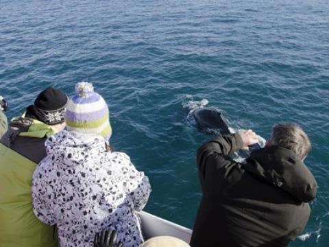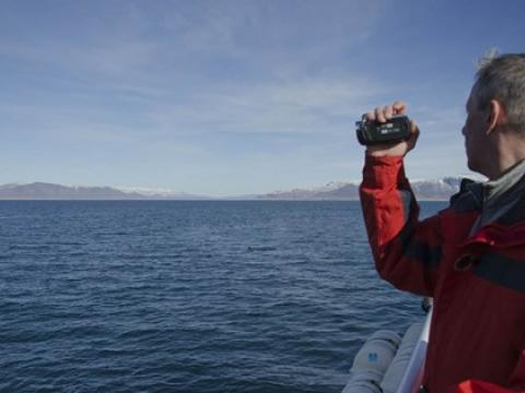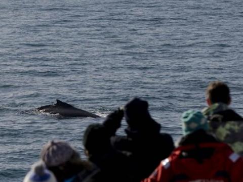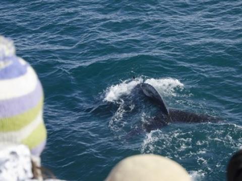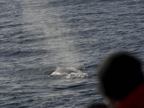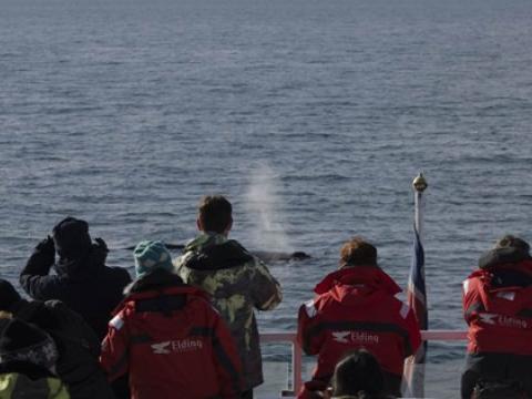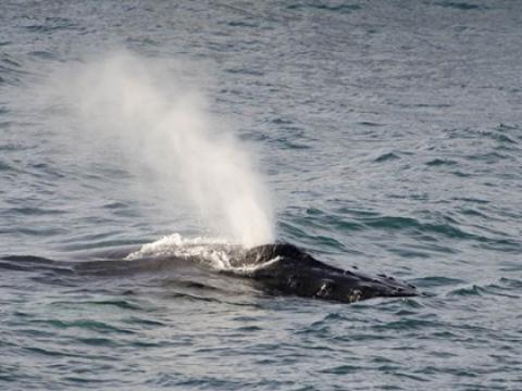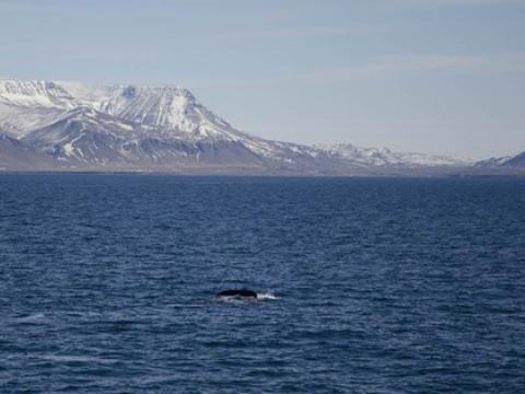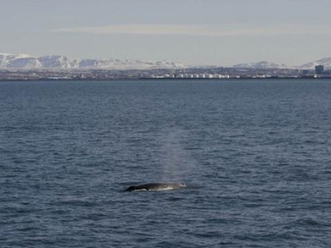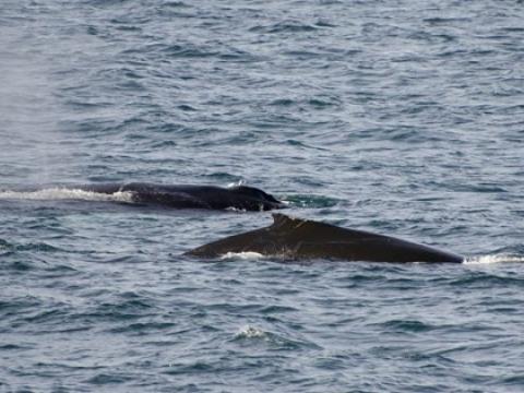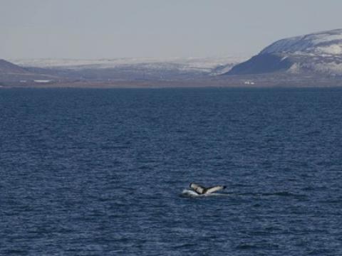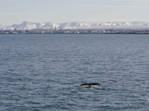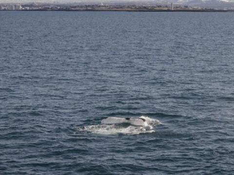 Tour at 13:00 Report from Hafsúlan: What a day in both weather and whales. We sailed out from Reykjavík in beautiful weather, sun shining, calm seas, blue skies and great visability so we could see all the way to Snæfellsjökull. We headed towards the area where whales were seen the day before and was expecting about a hours sailing before seeing anything but to our surprise we found two Humpback Whales very close, no more than 30 minutes from the harbour which was great because we could spend longer with them. Looking at the fishfinder on board we saw fish from 2m from the surface to the bottom which was 34m deep. The humpback were obviously feeding by the way they were behaving (changing direction constantly, diving frequently and surfacing frequently, rolling and even one time we saw one lunge out of the water mouth wide open just 10-20 meters from the boat. Both also showed their tails many times. Whilst watching these two we could see another in the distance closer to land, so we wanted to also say hello to that one too. Once we got to the area we noticed their were two. All in all 4 Humpback Whales seen on todays tour. What a Day!!