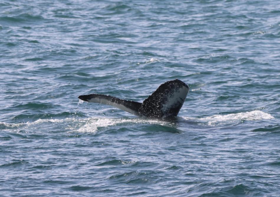 Report from Eldey: the sun warmed our faces and a strong eastern wind pushed us out into a calm bay this afternoon. After some searching about a big splash suddenly caught our attention. A humpback whale had just made its presence very known so excited we kept on the lookout for this creature. It went for very short dives that lasted mere minutes so we got to see it nice and close multiple times. It even showed us its beautiful fluke every now and then when it went back down! After a nice long encounter with this whale it was time for us to go back towards port, satisfied with this excellent afternoon trip out at sea.
