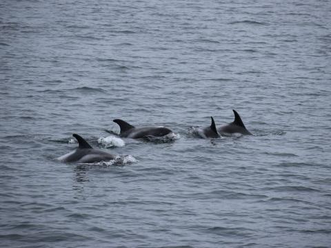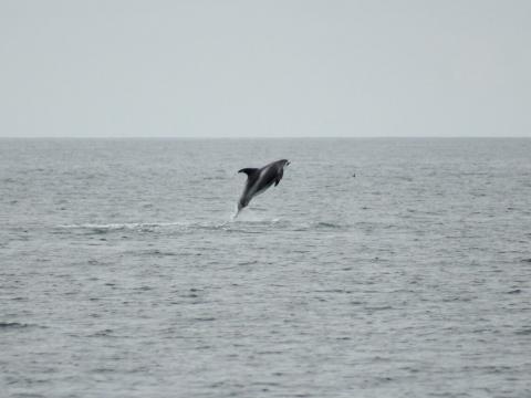 Report from Eldey: Sailing out, we had really good sea conditions with minimum swell. There was almost no wind and the sky was overcast, which often helps us spot animals as it allows for more contrast between the animal and the (mostly grey) environment. As we were getting close to our main sighting area, we found some white-beaked dolphins, which were swimming around close to one of the other whale watching boats. There were quite a lot of them and at one point we estimated this pod to be made up of around 12 individuals!!. They were fairly relaxed surfacing frequently, but not exerting too much energy. As they were very calm, we could stay with them for a long time. After about half an hour, we decided to move on and look for other animals in the bay. As we were looking for other species, we still spotted some different pods of white-beaked dolphins, but couldn't find anything else for quite some time. Luckily after about 45 minutes, we spotted a minke whale a little in the distance. As we got closer to the animal, it surfaced fairly close to us which was really cool. We saw this minke come up for around three surface sequences, during which it came within 50 meters from the boat. This was really awesome, as we got a pretty good look at the animal. Unfortunately, we were running out of time and had to turn around after staying with the animal for around 20 minutes. On our way back we even saw the big pod of dolphins again and stayed with them for maybe 5 more minutes but shortly after, continued our way back to the harbour.