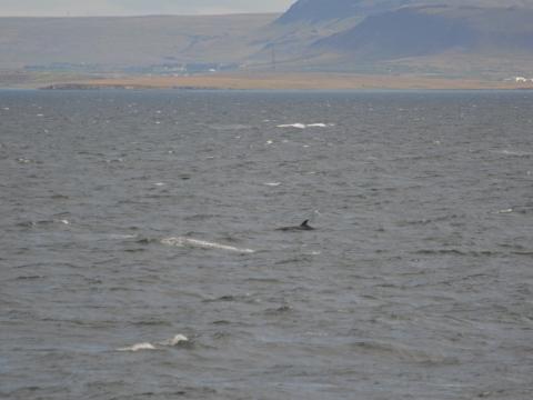 Report from Elding: The weather this morning was not on the good side. Strong winds and out in the bay the swells grew high. Started searching towards the north getting some protection from the mountains. But the journey remained rough throughout the tour. After 40 minutes of sailing we managed to find a minke whale in the rough sea. It could have been two individuals in the area so we stayed a while, trying our best to get good looks of the animal. It surfaced very violently in the swells so when it came close we managed to get a few great looks of this individual. After we had lost sight of this minke we scouted the area outside the entrance to Hvalfjörður but we didn´t find any more cetaceans on this tour. We returned to harbour after a nice sailing close to the coastline of Reykjavik.