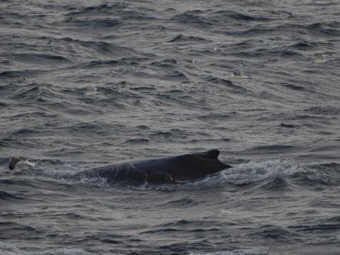 Report from Eldey: Passengers were warned for this trip, the weather was expected to be worse than this morning ! Still, sun was shining when we left the harbour. The boat was not even shaking that much, for a while the trip was nice ad even warm. After sailing a long time, aiming offshore, we spotted a blow. It took us a while before finding the source of this small geyser but we eventually found a humpback whale. "Þröstur" was back again. During our sighting of this animal the wind picked up and the boat started to rock pretty hard. It did not prevent us from having great sights of the humpback, we could see the fluke several time and we even got one spectacular tail slap ! While following this whale, we noticed huge splashes in the distance. There were several white-beaked dolphins jumping together, resulting in splashes quite spectacular for dolphins ! We could quickly join them and they became interested by our boat. They dashed toward us and came under the boat, then surfaced several times close to the front of the boat. It was a fun show for us just after an amazing humpback whale. During our time with the cetaceans the wind kept on getting stronger and we got shaken pretty badly unfortunately for some unlucky passengers that proved the seasick bags to be useful. It is hoped that the remaining passengers had fun on a roller coaster ride ! Braving the rough sea conditions, we made it home well and alive. Whales and stormy sea, this is what adventure is about !