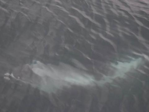 Report from Hafsúlan: Similar conditions as before greeted us and from time to time the sea shimmered golden in the light. It took as a bit longer to find the cetaceans but in the end we had durable and good sightings. We started with 5 harbour porpoises which were probably feeding as we saw them splashing, milling, leaping and even porpoising, at times 5 were to be seen at once. Then we observed a minke whale named "Base sqn" for a long time while he was milling and feeding, rising sometimes steep by closing its mouth while coming up. As it was rolling under a flock of resting lesser black-backed gulls, gannets and puffins it made them fly away. Then as they sat down it happened later again that the birds were reacting at the movement of the whale. Then we watched a second minke which was the same as in the morning with the big nick which was showing it baleen plates for a short moment as he came up before it closed its mouth. An unusual sight we could enjoy.