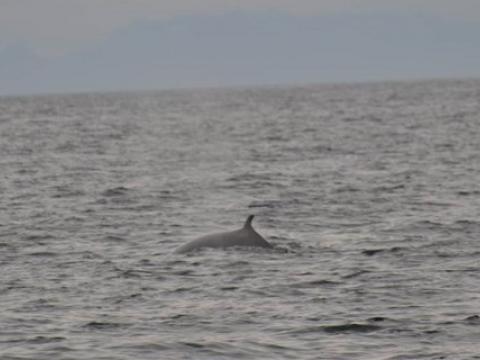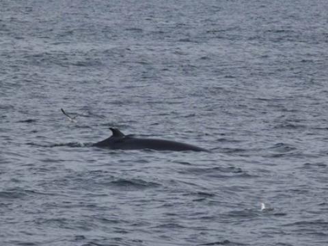 Report from Elding: we had a virtually still sea and a minke whale surfacing shortly into the tour. This one was heading south towards the Reykjanes Peninsula but as it had gone down for a deep dive, another one appeared some distance away on the other side of the boat, leading us to believe that there were in fact 2 around us. However, as the fishfinder showed no fish, both were most likely just travelling through. We then went further off towards Hafsúlan to have a look at the dolphins and minke whales they had, but we did not get that far as before we came across an area with a number of feeding seabirds and one delightful minke whale amidst the feasting. Feeding behaviour, now as always, the top thing to see.