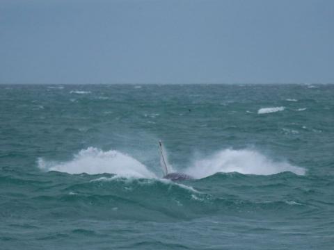 Report from Eldey: This tour should prove everyone right, that whales don't care about the weather! We sailed out with the wind in our face and an overcast sky. As we met the first species of the day, an elusive minke whale, it started to rain. We managed to follow the minke whale for a short while and take some pictures but then decided to go further out. A pod of 4-5 harbour porpoises crossed briefly our path but we had spotted already a big blow. As we approached we could even smell this humpback whale! He started to slap his flippers and tail and roll around to everyone's enjoyment. He even showed us the fluke, so we were able to identify him again as Charly. Beautiful encounters in miserable weather.