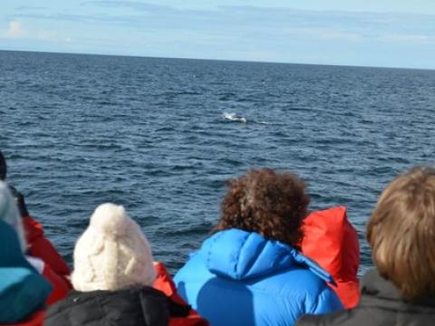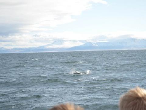 Tour at 13:00: Report from Hafsúlan. We left from Reykjavík and headed to where we had seen the dolphins that morning. After an hour sail we found a pod of White-beaked dolphins. There were about 6-8 individuals. We were following this pod when suddenly a minke whale surfaces very close to the boat. It came up a few times near the boat before heading for a deeper dive. We didn't find it again after that. But this was an amazing tour, great weather, dolphins and a Minke whale.