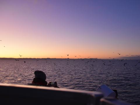 Report from Eldey: I could start every morning like this!! Calm seas, a stunning sunrise and a bay full of life. There was so much birdlife with various species and they were all gathering in flocks of over a hundred birds to feed on fish. As we approached them they would take off and fly all around us. Feeding with them were a minke whale as well as 6 white-beaked dolphins. The most beautiful thing was that all of the animals did not change their behaviour as we stayed within only meters of them, but remained in their natural life, showing us their true, untrained and wild way of life. Also a second pod of 5 white-beaked dolphins we encountered on or way back to Reykjavik was simply hunting fish, focusing on survival and not us. Nature the way it should be and the best way to experience it!!