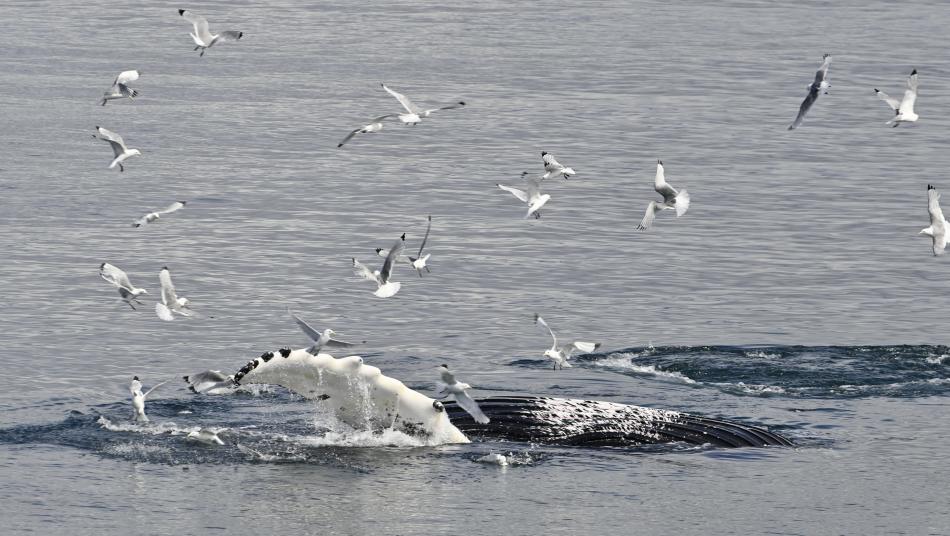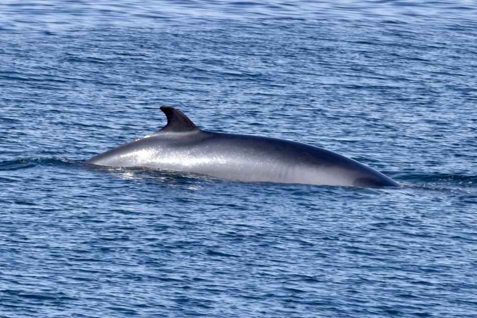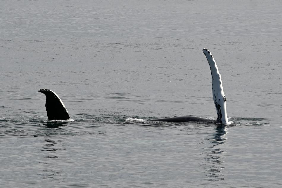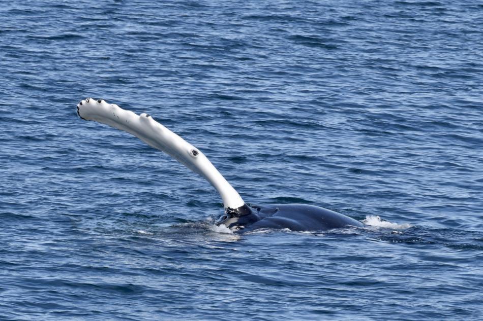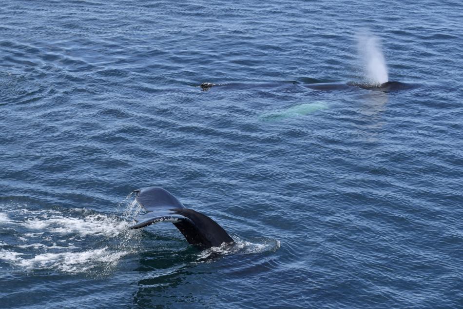 Report from Hafsúlan: Heading out into a very calm bay this evening, we had high hopes of spotting some cetaceans after all the luck we had earlier in the day. Sure enough, the lovely conditions still made for great sightings, and it did not take long before we came across our first minke whale breaking the surface. We watched it surface a few times before spotting a blow a little further away. It was a humpback whale going for some deep dives. We approached to observe, and it treated us to several beautiful fluke dives. Just a couple of hundred meters away, we suddenly noticed splashes. Heading in that direction, we saw a small pod of white beaked dolphins jumping and spinning through the air. Unfortunately, they calmed down as we arrived, but with all the cetacean activity around, we continued on to see what else we could find. It was not long before we spotted more blows in the distance - another humpback whale diving deep in the bay. We stayed with it for a while, then moved on to yet another humpback whale a bit further out. Suddenly, another blow appeared closer to us. There was so much life around! We decided to stay with this large individual for a while as it was milling on the surface, then treating us to several close fluke dives. As we began heading back to the harbor, we encountered thee more minke whales and two additional humpback whales. What an abundance of wildlife!