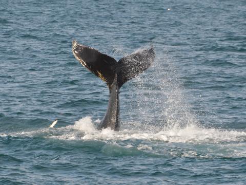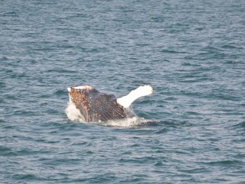 Report from Hafsúlan: Many times these words have been spoken before, but this time is extremely close to be the truth: this tour was incontestably the best tour of the season. We set sail in a more than tolerable weather, a little bit windy but sunny with calm sea. The wind was blowing from South-East, maybe it was the sign of what was about to come. About half an hour after we left from Reykjavik, our researcher Alberto spotted a big blow in the distance, 2 kilometers away. Without a doubt, it was a humpback whale, called Charlie. It took us some time to get close to this whale, but when we finally approached it, it began to display an incredible show to us. This humpback breached over 20 times ! At this point, it is shamelessly that we confess that we lost count, being to busy to being in awe in front of this whale. Time was not about counting or thinking anymore, but just to let yourself go into pure joy. Still having a lot of energy, this humpback then started to display pectoral fin, tail, and head slapping ! It was showing us everything it had in its behavior repertoire ! It kept on doing so for one hour of pure awesomeness. Times to times, it breached again, taking breaks from all the slapping. Needless to say, we were all thrilled. Having stayed for a long time, we decided to look for other species. We finally found a small pod of 3 - 4 white beaked dolphins and sighted one minke whale, but those cetaceans were more elusive, so we could not get close looks. Anyway, we still had a whale of a time. It is hoped that more tours like that will come !