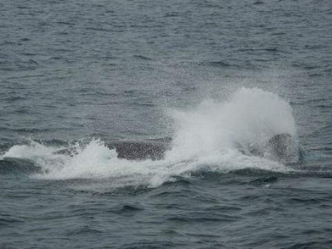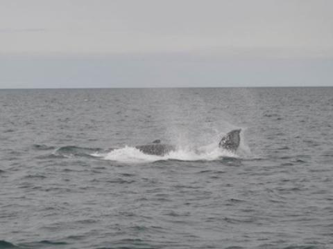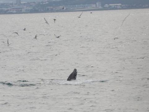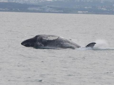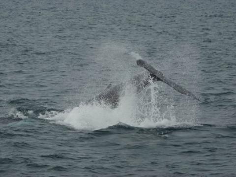 Report from Hafsúlan: We headed out to sea as the sun started to peak out from behind the clouds. The sea was calm and there was a nice warm breeze. We headed towards the area that we have been seeing humpback whales lately and we soon found ourselves among various amounts of birds feeding. Lesser Black-Backed Gulls, Fulmars, Kittiwakes, Arctic Terns and Puffins were all enjoying a feast on the top of the sea. Not long after we saw our first Humpback Whale appear in front of the boat about 200 meters away!! We continued toward this large whale and saw it surface several times letting out large blows. At first the whale seemed to be very relaxed only coming to the surface every now and then without showing much of itself, but after a little while we spotted a flock of birds feeding and it seemed as if the whale was headed in that direction. Just as we had predicted the humpback whale surfaced right below these birds and rolled on top of the oceans surface letting us with see its large mouth and then its large fin as if it were just waving to us. The whale continued to surface regularly as it was before, but all of the sudden to the right of the boat only about 60 meters away the humpback whale fully breached out of the water jumping up and out letting us see it's entire body and turning 180 degrees before splashing back into the water. We could not believe our eyes this was amazing and beautiful. We all cheered and could not wait to see what it might do next. We got to see it surface few times leaving a large blow behind and it finally made it's way to another flock of birds where it surfaced and rolled on the water one more time letting us see its large fin. The whale then made it's way towards another boat across from us and started to flap its tail hard on the water. This is also a very cool thing to see , however, this is an aggressive behavior and usually means that the whale would like to be let alone. We respected the whale and headed on our way to see if we could find something else. We continued on our way finding some large flocks of Puffins sitting on the water. Before heading home we stopped at puffin island where thousands of puffins seemed to be flying all around. This tour was truly magical and rare. We all left extremely happy and excited about what we were able to see today.