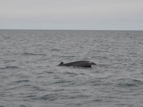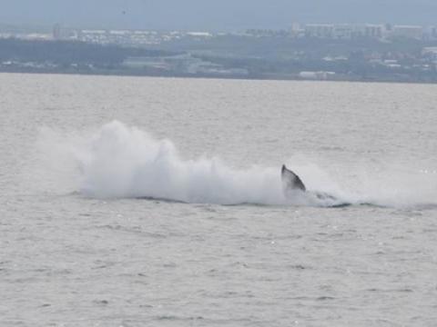 Report from Hafsúlan: The weather was a bit chilly with a slight drizzle, but our passengers were more than prepared for it with the on board overalls that we provided for them. We headed out into the bay and stopped at Akurey first and were surprised to see several Puffins flying on by. We then headed out to sea in the direction of where we had been seeing other whales today. We searched for quite along time and our passengers were more than happy to help us look for these lovely animals, however we did not seem to have very much luck. Our engineer finally spotted a Minke Whale, but it vanished before we could get a good look at it. We continued on our way towards Akrafjall mountain when all of the sudden about 200 meters away from us we could see White-Beaked Dolphins jumping up and out of the water. We got closer to them and got to see their lovely white beaks and striped sides as the came fairly close to the boat. We decided to continue our search once more before heading back to the harbour and found more white-beaked dolphins. These were very playful animals jumping out of the water, spinning and coming very close to our boat. It was a lovely ending to a rainy but exciting tour.