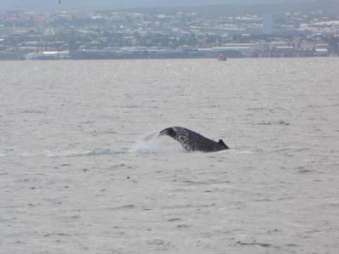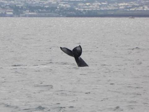 Report from Elding: We headed out in beautiful weather, sun shining and calm sea. We had only been sailing for a little while when we saw huge splashes in the distance. As we got closer we could see it was a Humpback Whale both breaching and slamming its tail against the surface. But then all of a sudden it stopped and we didn't see it surface again. We then decided to head further out and after about half an hour we spotted another humpback Whale. This one was surfacing very slowly and didn't seem to go down for a deep dive, it could have been sleeping. We watched this whale for the rest of the tour and saw it surface often, swimming right beneath the surface and even raising its tail a few times. It didn't seem to be slapping it as it does to show aggression but rather just rolling around in the surface. While watching it we also saw one Minke Whale that was swimming by. It surfaced three times but we decided to stay with the humpback. On our way back we stopped in Akurey. A couple of our passengers, Michelle and Paul Collister-Bartlett, from Scotland got some beautiful pictures of the humpback and even a video which you can see here below.