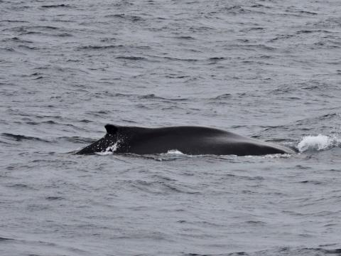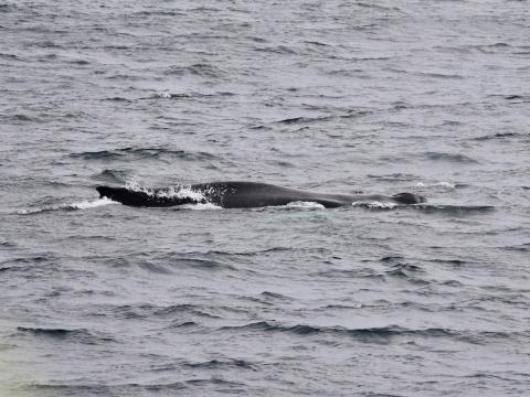 Report from Eldey: A gray and rainy morning for us today and it felt a lot like you would expect Iceland to be considering it's name. But overall conditions were not bad for spotting, as waves were at a height where they do not have white-caps, which helps a lot. It was nearly 90 minutes of sailing when a big blow was spotted by us!! And by big, we mean big. It was a humpback whale! So great to see this species, as it has been a few weeks sinc we last had them in the bay. It moved slowly around our boat and was often very close. At a point so close, that we saw it's blow holes and white pectoral fins. Staying with it almost an hour was amazing.