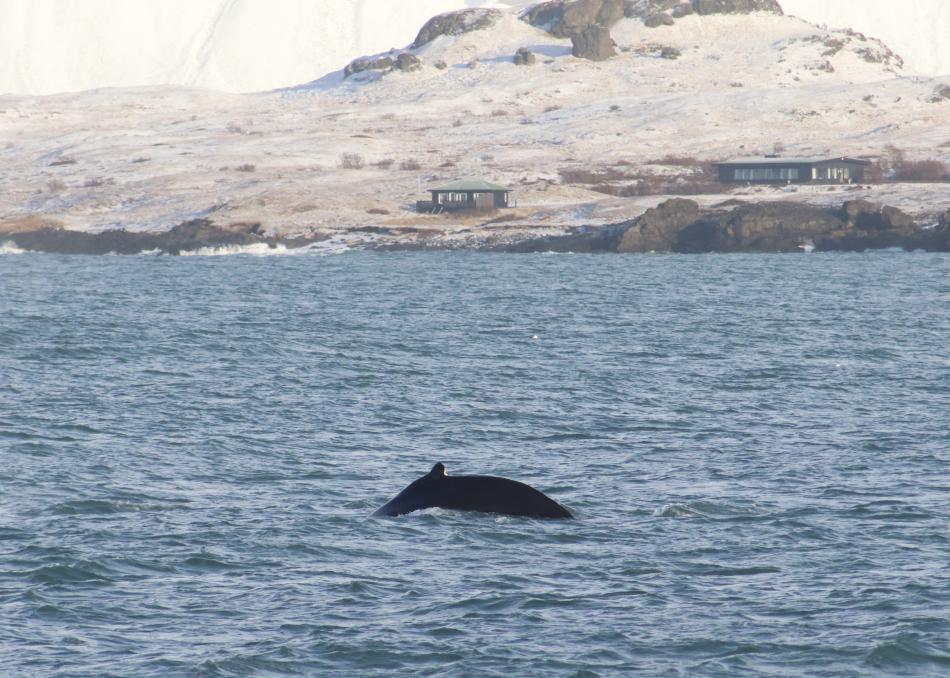 Report from Eldey: Our tour got blessed with a sunny sky and amazing snowy views on Esja. This inspired our Captain to take us further out! There was still a bit of swell, but it was much less than in the morning. The sun shining on the ocean felt like we were teletransported to the Caribbean sea because of the turquoise water! Thanks to the sun, we were able to spot almost at the same time splashes and 2 blows! The splashes were from at least 10 or more pods of white-beaked dolphins! They seemed quite happy as they didn't stop jumping for a second and were being followed by loads of black-legged kittiwakes, signaling the presence of food. The blows were about 500 metres apart, and they were from 2 humpback whales!! These amazing giants were probably feeding on the same stuff the dolphins were, likely to be capelin. They did not jump like the dolphins, but displayed amazing fluke dives for everybody to see, followed by short dives and never swimming away from us. We stayed with each individual for about 20 minutes, with dolphins in between and after a few snow clouds we decided to call it a day and head back home! Frábært tour!!