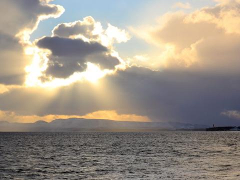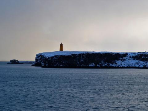 Report from Eldey: Chilly but overall beautiful morning out of Keflavik today! Though the temperatures were challenging, we set sail with a splendid sunrise piercing through the clouds behind us. We started by going West until we turned and circled around to have the waves on our back. The cruise was comfortable but sadly fruitless, as no cetaceans showed up on our tour. Thus we issued complimentary tickets, hopefully next time will be the right one!