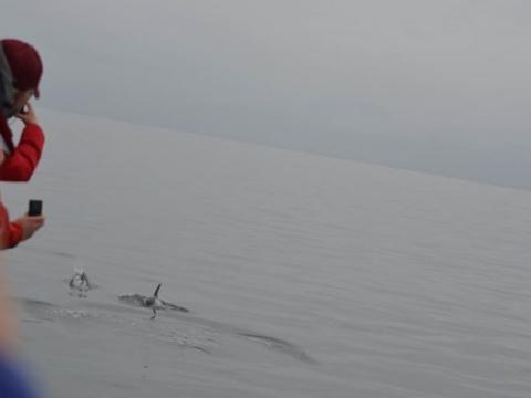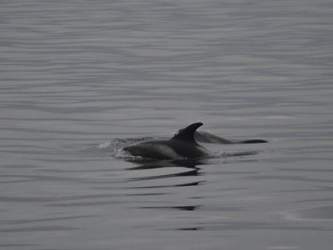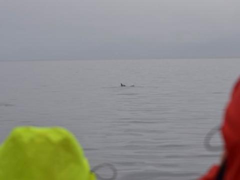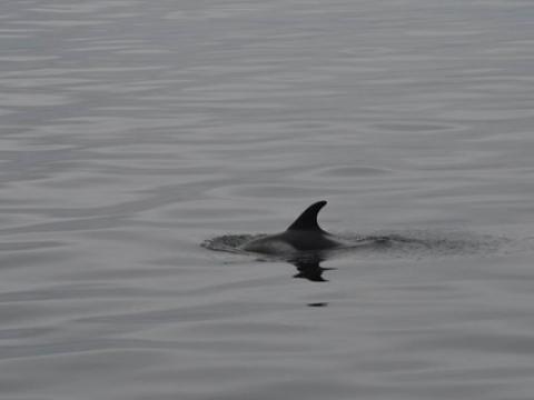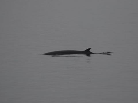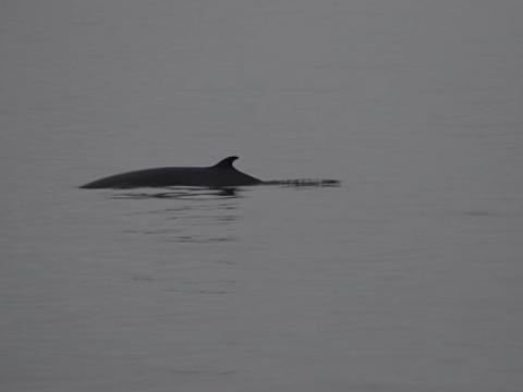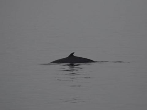 Report from the Hafsúlan: This afternoon the vessel sailed out into the Bay of Flaxafloí with light rain and overcast skies. The search for marine mammals has proven to be more difficult this afternoon as birds were rarely encountered and thus couldn't be used as indicators for shoals of fish near then surface. Nevertheless, we were able to spot one Minke Whale early in the tour and it came as close as 50 meters to the individual. As we were soon to find out due to excellent pictures from our researchers, this individual was called Jan and last seen in 2010. When Jan submerged finally for an extended period, we started looking for other cetacean species throughout the bay. Intermittatly, Harbour Porpoises started popping up but disappread just as quickly. Later on we could point out another 2-3 Minke Whales. However, the individuals seemed to keep themselves at a distance, concerned more with traveling and searching for food rather than people watching. The low numbers of birds and the behaviour of the whales, maybe indicative for a low and scattered amount of food.