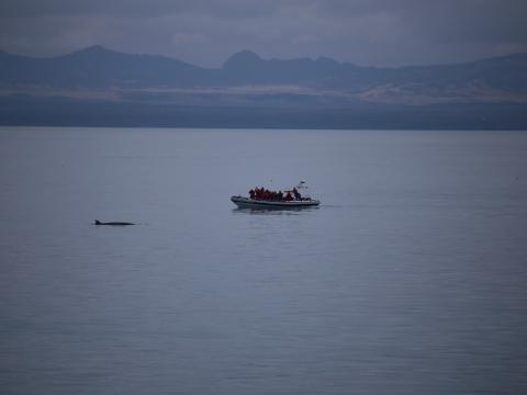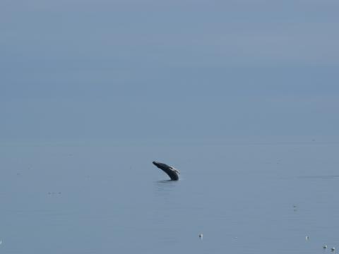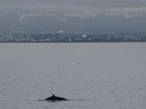 Report from Elding: Conditions were absolutely fabulous, as there was barely a breath of wind and the cloud cover provided a perfect grey reflection across the water, if there were cetaceans out here, we weren't´t going to miss them. The tour got off to a fantastic start as not long after leaving the harbour we were surrounded by harbour porpoises! Despite not stopping for them it took at least 15 minutes before we stopped seeing this dispersed pod, leading me to believe there must have been >50 in the area. Only 10 minutes after that we bumped into our first minke whale under a flock of feeding birds, a great indicator of food. Although there were likely at least 4 in a 2 km radius we decided to continue to where the other boats were, and on approach we saw a humpback whale breach 4 times in the distance! Just one minute after heading towards this individual did another one pop up 200 m from the boat. This small individual dived after a few surface breaths so we decided to head after the more active individual, although as we neared it it begun to surface more gently. Still fantastic to see the animal breach from a distance! After 20 minutes with this animal we headed back and on our way crossed a solitary white-beaked dolphin - how unusual to see one on it´s on, but still a fantastic way to end the tour with all 4 species seen.
