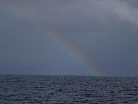 Report from Hafsúlan: it rained now and then on us this evening while the sun sneaked down between the clouds. It took us longer than one hour to see the first whale of the tour, a minke whale. The whale came up just in front of the boat in about 400 meters distance. It was easy to follow this whale because it was just milling around in the area, travelling slowly around but changing directions quite frequently. The air was so still that we could very easily hear the blow of the animal which mate it even easier to follow it. While enjoying the company of this minke whale we spotted another minke whale in about 500 meters distance. We decided to follow that whale until we had to head back to the harbor.