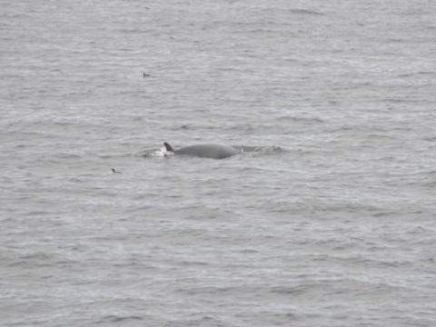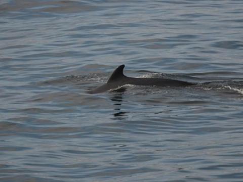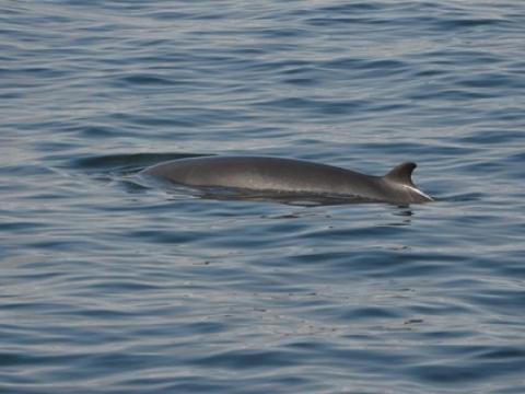 Report from Hafsúlan: Another morning with absolutely perfect sighting conditions: the sea was almost mirror-like and the clouds gave it a perfect light grey colour. And in around the same area as yesterday we found lots of Minke Whales and Harbour Porpoises again. We watched the minkes surface in all directions around us, some of them moving fairly close to each other, others peacefully swimming on their own. And in this beautiful weather we also got plenty of looks at the porpoises. Some of them came very close to the boat and others were travelling quite quickly - offering nice looks at their bodies as they splashed out of the water. The minke whales also did not seem at all bothered by our presence, one of them popped up right in front of our boat a couple of times! We got to see its head, the blowholes and nice details of its coloration. Our researchers on board were able to identify one of the minkes as a previously discovered individual called "Flickr". After enjoying this seemingly productive area for a good while it was time to turn around again and enjoy some music on the sunny sail back to the harbour.