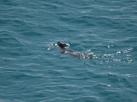 Report from Elding: We headed out under the glare of the midnight sun and as soon as we came out of the harbour we were greeted by a huge flock of birds. There were birds every way we looked but the minke whales were feeling extra sneaky so we didn't spot any of them on this tour. The extra special white beaked dolphins we encountered completely made up for the lack of minke. We spotted jumping dolphins far off in the distance but when we came closer they had dissapeared. For a while I thought I'd immagined the whole thing but then a pod of 4 dolphins surfaced 20-30 m away from our boat and played around us for a while. Soon other pods showed themselves all around our boat and when we had our fill of dolphin watching the dolphins started foing flips, jumps and body slams. Soon all the jumping stopped and the dolphins swam away in the same direction at a fast pace so we think the slams and flips were a way of sincronizing the different pods before an attack. Such a magical display and on the way back we were joined by the tones from our magical mucician.
