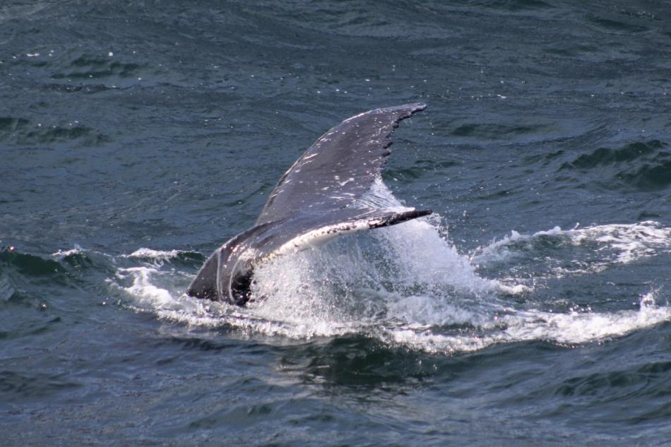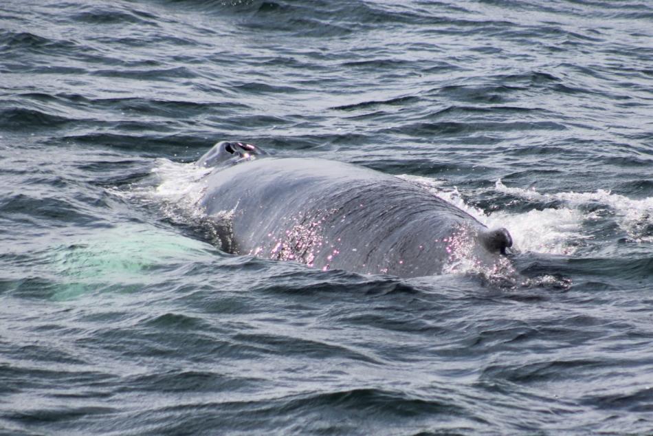Report from Hafsúlan: Today we started our tour with clear skies ahead of us and a very weak wind that made us unzip our jackets and enjoy the light summer breeze. On the way, going to the center of the bay, we spotted many flocks of seabirds and small fishing boats, indicating that we might be getting closer to a productive area. And there it was! We spotted a blow very far away, as the visibility was fantastic. We could even see Snæfellsjokull very clear. We got closer and... we had a humpback whale in the area! This humpie was very chill, going for shallow dives and when it showed the fluke going for a deep one, would not take over 2min to come back! We enjoyed it for a while, always admiring their white pectoral fins that we could see even through the surface. After, we started our way home since we were quite far out in the bay. Lovely morning!
