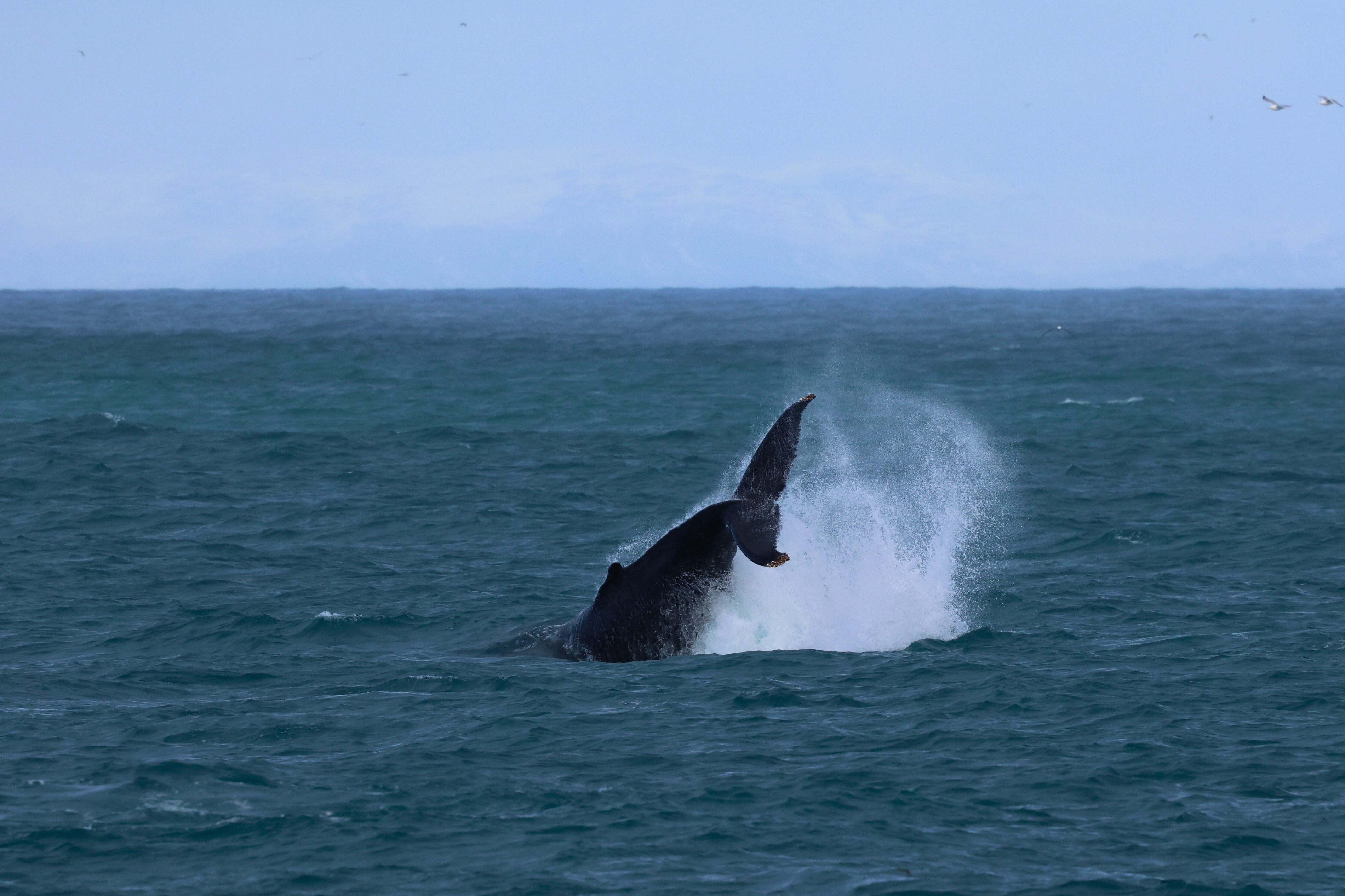 Report from Eldey: We went out in the best of weather. Wind blowing from the south, sun shining and a few heavy clouds here and there. All together the conditions were perfect to find the whales. We sailed out onto the bay and soon spotted the blows of 2 humpback whales in the distance. As we got closer one of the animals started throwing its massive tail out of the water and slamming onto the surface. A spectacular sight that allowed for some great photos. We stayed with the animal before we left for the other one that was busy feeding just a few hundred meters away. As we turned to head back to the harbor one whale started beaching and slapping its pectoral fins behind us. We could not let this opportunity pass and turned to see what was going on. We were rewarded with multiple breaches and more pectoral slapping. That shows once again how things can turn in an instant. Nature never gets boring.