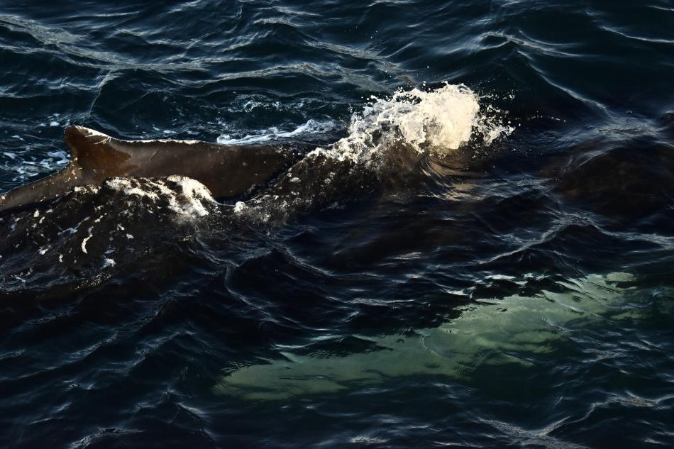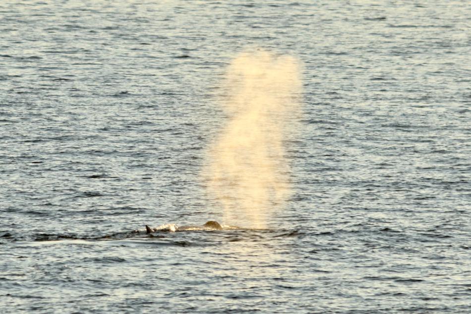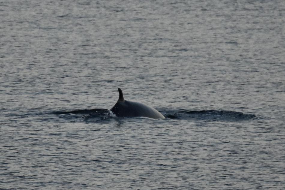 Report from Hafsulan: We had such an amazing start to the day, we sailed out with the sun still rising slowy, making the sky above the city look orange and above the sea look pink. The moon was glowing as well. Maybe 15min of sailing went past and we spotted a minke whale, this one had quite a bit of speed to it. First it came up a few times and then was pretty much swimming next to us guiding us in a way. Then (!) a humpback whale appeared, which meant we had the minke diving on our right and the humpback straight ahead of us. This one was clearly resting, taking its sweet time at the surface as well as below. We saw its fluke as well a few times but then decided to take a little sail and not disturb it too much. Before heading back to the harbour we stopped at the humpback again. It was still resting and came extremely close a few times so we could see its pectoral fins through the water. We enjoyed this calm humpback for a bit before eventually headed back to harbour.