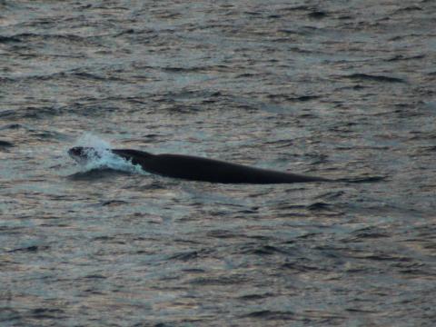 Report from Eldey: Do you know the feeling when it´s dark and cloudy in the morning and you don´t want to leave bed? We don´t! Everything was sleepy: Reykjavik behind us, passengers and even birds were flying in slow-motion but cold breeze fast woke up us. We went back to same place where yesterday we were lucky and fast we found a minke whale. First it was very difficult to find it but we didn´t give up and whale just came up 20m next to our starboard side. It was quite strange that our minke was appearing constantly in spots very far one from another and we start to suspect that we had two of them. It was confirmed when other boat was staying with one whale and another surfaced again right next to us. To keep with this minkes was a challenge but having such a close encounters was a fair price to pay.