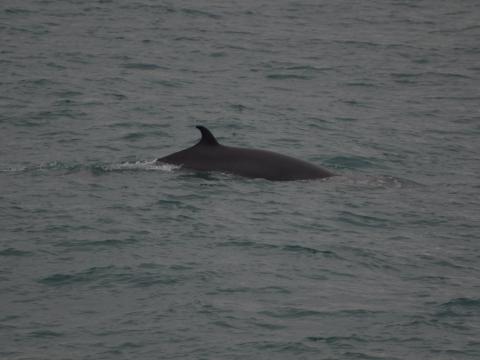 Report from Elding: This afternoon conditions were slightly rainier but as we got further out the rain stopped and the winds died down to almost nothing, perfect conditions for whale watching. Our first cetacean was spotted thirty minutes after leaving the harbor as we saw the black back and dorsal fin of a minke whale! We got a few good looks at this individual but it was quite elusive so we didn't stay too long and soon headed further out. Around twenty minutes later the the sea erupted on our left side with a pod of 10-20 white-beaked dolphins breaching again and again. This was a large pod of dolphins feeding and we had an awesome display with the dolphins breaching, leaping and interacting with the boat. The dolphins were all around us for quite some time, giving us a good opportunity to get pictures and enjoy these awesome creatures. We headed back to Reykjavik quite happy and satisfied after this encounter but as we neared the harbor a minke whale surfaced right in front of us three times! A fantastic end to an already great tour.