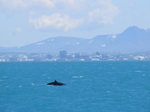 Report from Elding: It was a beautiful sunny day, with little wind and a perfectly flat sea. The sail out was as smooth as could be, just a short distance from the harbour a small pod of 3-4 harbour porpoises were spotted. They surfaced a few times before disappearing beneath the waters crystal blue surface. Further out into the bay our first minke whale was spotted it surfaced a few times only 100 meters away it then arched its great back and went for a deeper dive. We waited for a few minutes for it to surface, which it did a bit further away but were able to catch a better look at this animal. The captain then decided to head a bit further out into the bay. A further two minke whales were spotted in the distance, and once we were up a bit closer we were able to observe these animals surfacing a few times before they went for a long deep dive. These animals were being a bit elusive, so we headed further out. A flock of feeding seabirds were then spotted in the distance and once up close a small pod of 3-4 white-beaked dolphins were spotted only 100 meters away. However, these were traveling very fast and into the distance so we decided to leave these animals and start heading back. On the fine sail back the sun was beautifully warm and we were even greeted my yet another minke whale which surfaced only 50 meters away! It came up multiple times, before arching and going for a deeper dive. A few more harbour porpoises were also spotted porpoising out of the water!