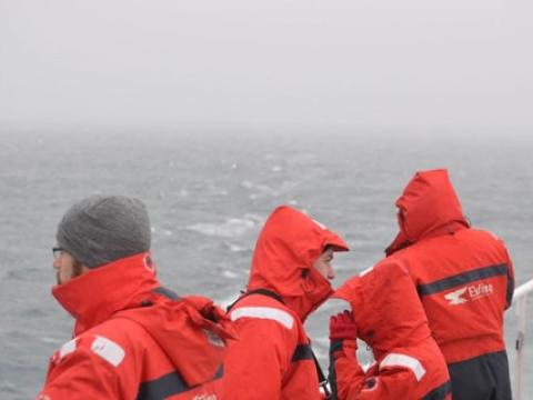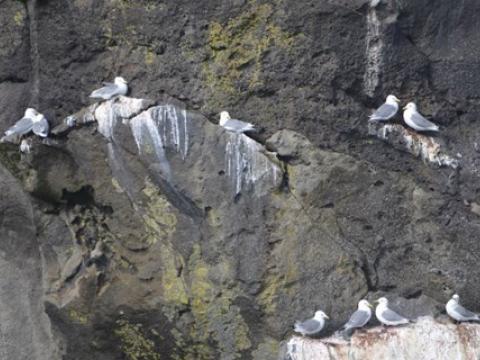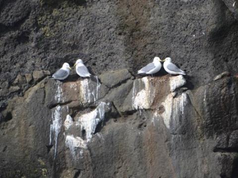 Report from Hafsúlan: Due to unfavourable sea conditions we decided to depart from Keflavík instead of Reykjavík to sail with the swell and wind rather than against it. The bus tour offered us some nice looks at parts of the Reykjanes Peninsula. At the beginning of the tour we got some very nice close-up looks at some sea birds (mainly Kittiwakes) nesting on cliffs of holmsbjarg near the harbour. As expected, there was a considerable swell as soon as we left the shelter from land near garður. Nevertheless we found a Humpback Whale on our way to Hafnarfjörður. It was traveling quite fast and changed direction a few times, but everyone on board got quite a good look, especially as the whale was riding the waves.