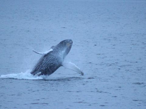 Report from Elding: Thanks to the reports we got from the zodiacs from Whale Safari, our sister company, we learned that there were some humpback whales in the area of Keflavik. Thus we took the brave decision of riding the waves towards that direction. And it proved to be the best choice ever made, since we had one wonderful tour. Particularly one of the best from my career as a naturalist. It took us almost 2 hours of sailing to reach the area but we were everything but bored on our way there. We saw around 5 minke whales (3 of them traveling together!) and one of them was actually closer than 100 m! We saw a small pod of 4-5 harbour porpoises for a few seconds (as good as it gets with this little shy ones!). But when we reached the Keflavik area... we saw the indescribable. We first spotted on blow almost at the edge of the Reikjaness peninsula, where Gardur is placed. Once there we saw one humpback whale. And then another one joined. But then 3 more were traveling towards our position! The tension was getting higher and higher. We found ourselves suddenly surrounded by 5 humpback whales!!! I have never seen so many humpback whales together in the Faxafloi! It was pretty obvious that there were 2 pairs traveling together and one rather solitary animal. Another thing is if this bonding was welcome by all the parts, since one of the humpbacks was clearly trumpeting (special sound they make to express discomfort) when the other one was surfacing simultaneously. We stood there, amazed by our luck for almost an entire hour and then sadly we had to start to head toward Keflavik harbour. In the way we joined the other couple that was speeding up a little bit and, for our surprise, one of the individuals decided to make a full breach right in front of us! Amazing! There's no other word to define this. So we reached the harbour but we had one final surprise: the humpback whale number 6, swimming almost at the entrance of the harbour. Again, one of the best tours I've ever been in!!!